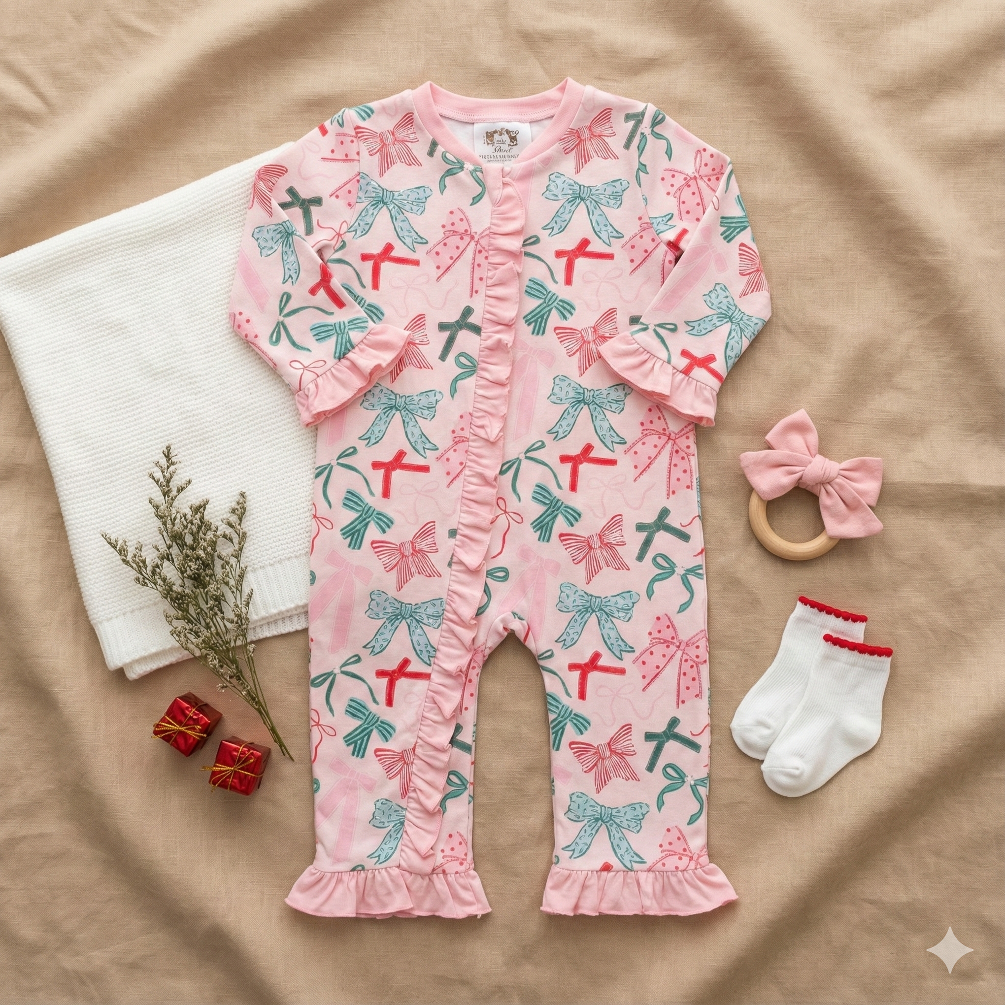 Pink Christmas Bows Lounge - Zippy (RTS)