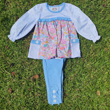 Polka Dot & Floral Legging Set - Blue (RTS)